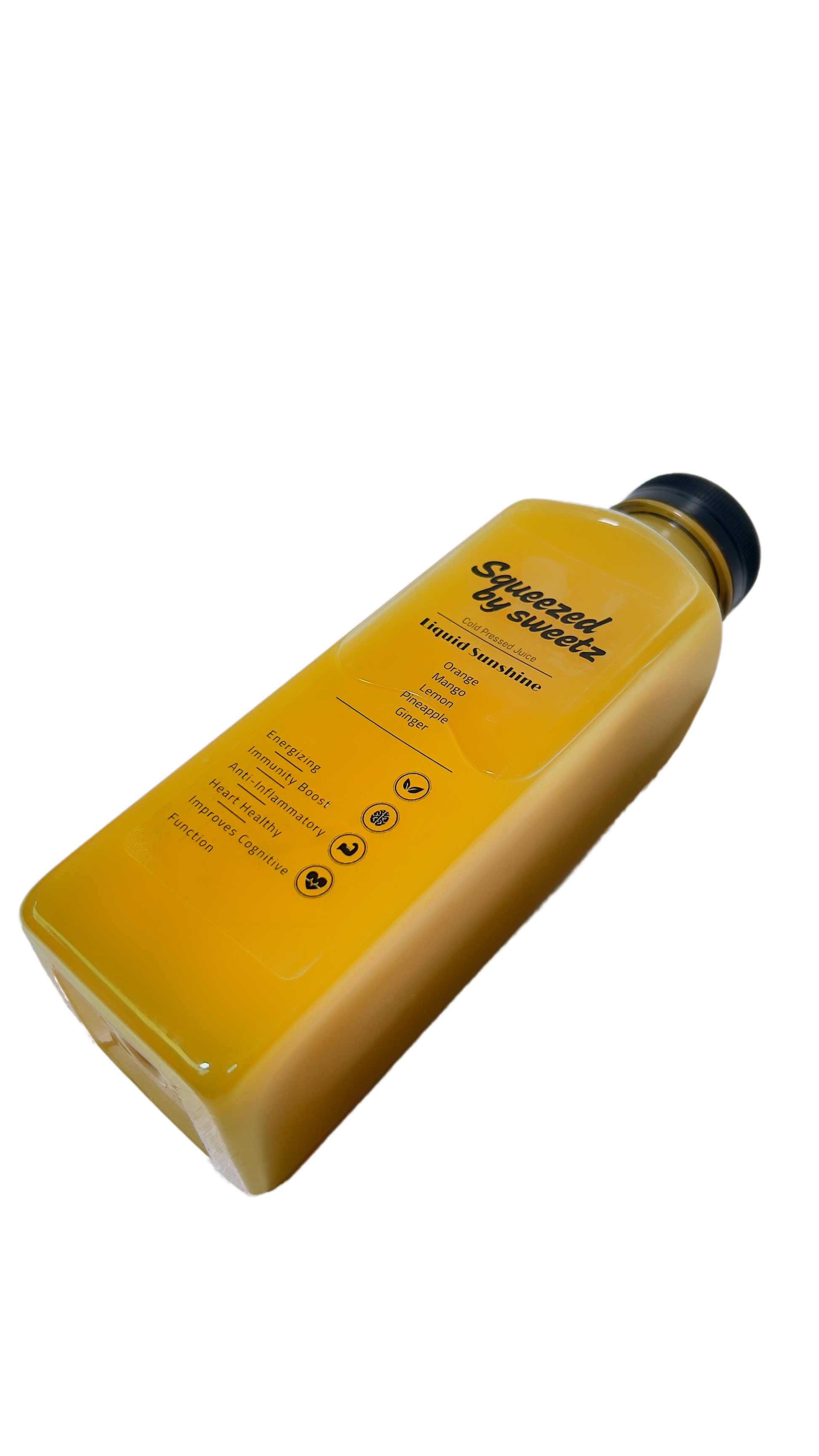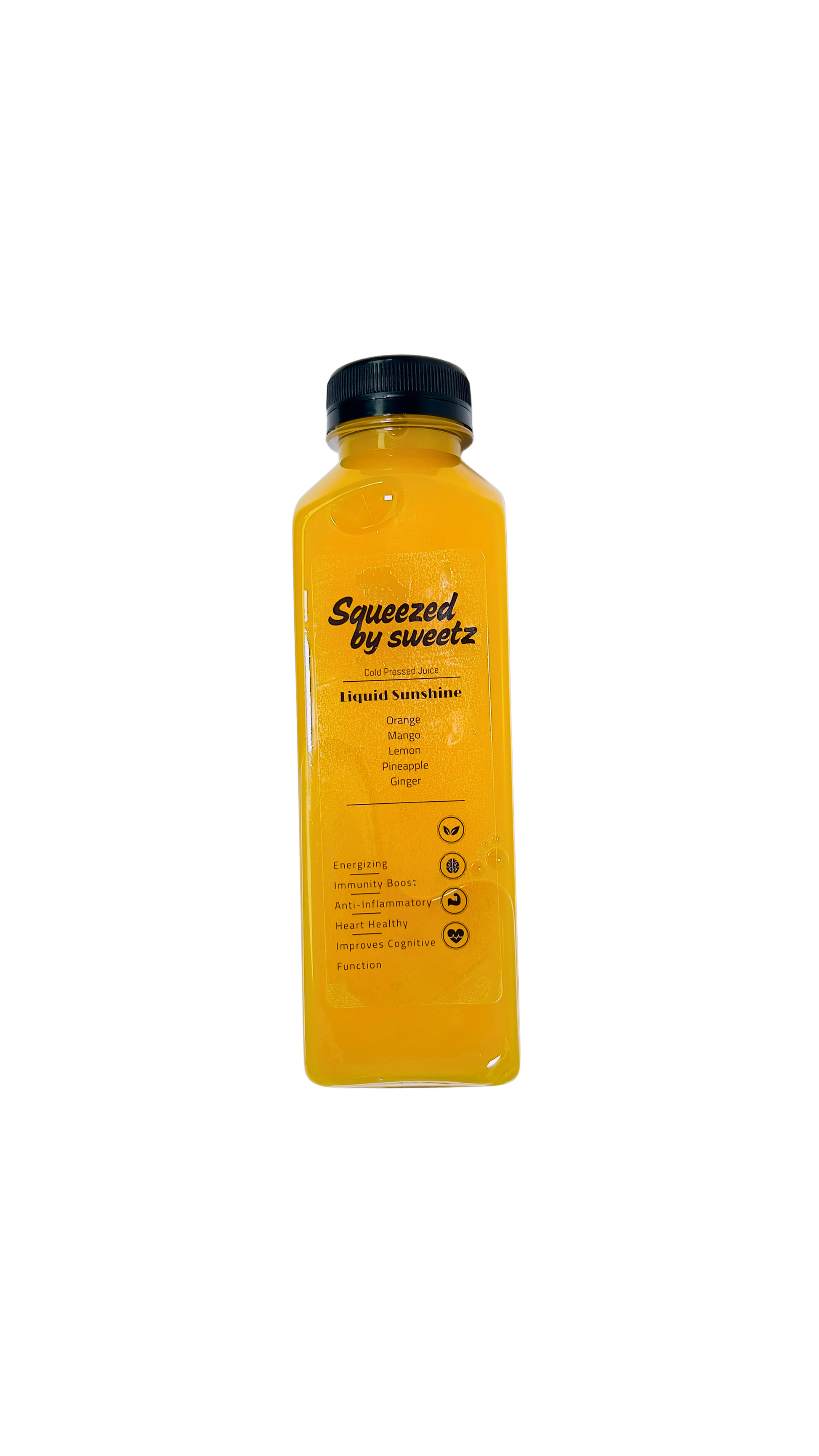 Bursting with tropical flavor and packed with essential nutrients, Liquid Sunshine is your daily dose of vitality in a bottle. This vibrant blend of pineapple, orange, mango, lime, and ginger delivers a refreshing burst of citrusy sweetness with a spicy kick, designed to invigorate your body and mind.